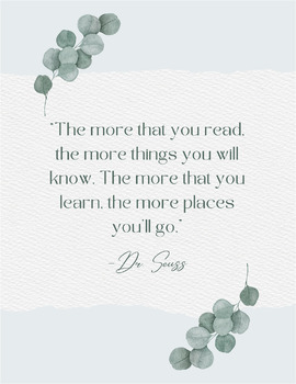 Looking for 25 inspiring classroom posters in TWO sizes: 8.5 x 11 AND 8.5 x 14? Each poster includes a famous reading quote with a beautiful botanical theme. These decorations will look amazing hanging in your classroom! Other great uses: bulletin boards, student or teacher gifts, reminders, desk art, binder covers, planner inserts, and SO much more! The smaller size is great for bulletin boards, binders, and reminders. The larger size is just right for displaying on walls, gifts, etc.