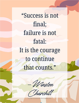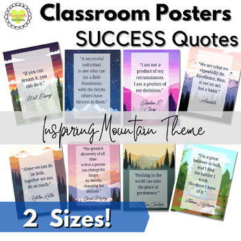 Looking for 25 inspiring classroom posters in TWO sizes: 8.5 x 11 and 8.5 x 14? Each poster includes a famous quote about SUCCESS with a beautiful mountain theme. These decorations will look amazing hanging in your classroom! Other great uses: bulletin boards, student or teacher gifts, reminders, desk art, binder covers, planner inserts, and SO much more! The smaller size is great for bulletin boards, binders, and reminders. The larger size is just right for displaying on walls, gifts, etc.