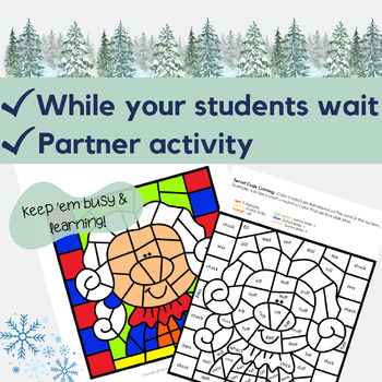 Need a NO prep, fun coloring activity that reviews Wilson Reading System®* Step 1 (CVC words)? These Winter Holiday Color By Code pages are your answer! Just print and go. This extra large pack has 14 differentiated pages covering each substep and 2 full reviews of the step. Students will enjoy creating beautiful, fridge-worthy pieces of Winter Holiday Day artwork while challenging their knowledge of essential decoding skills.